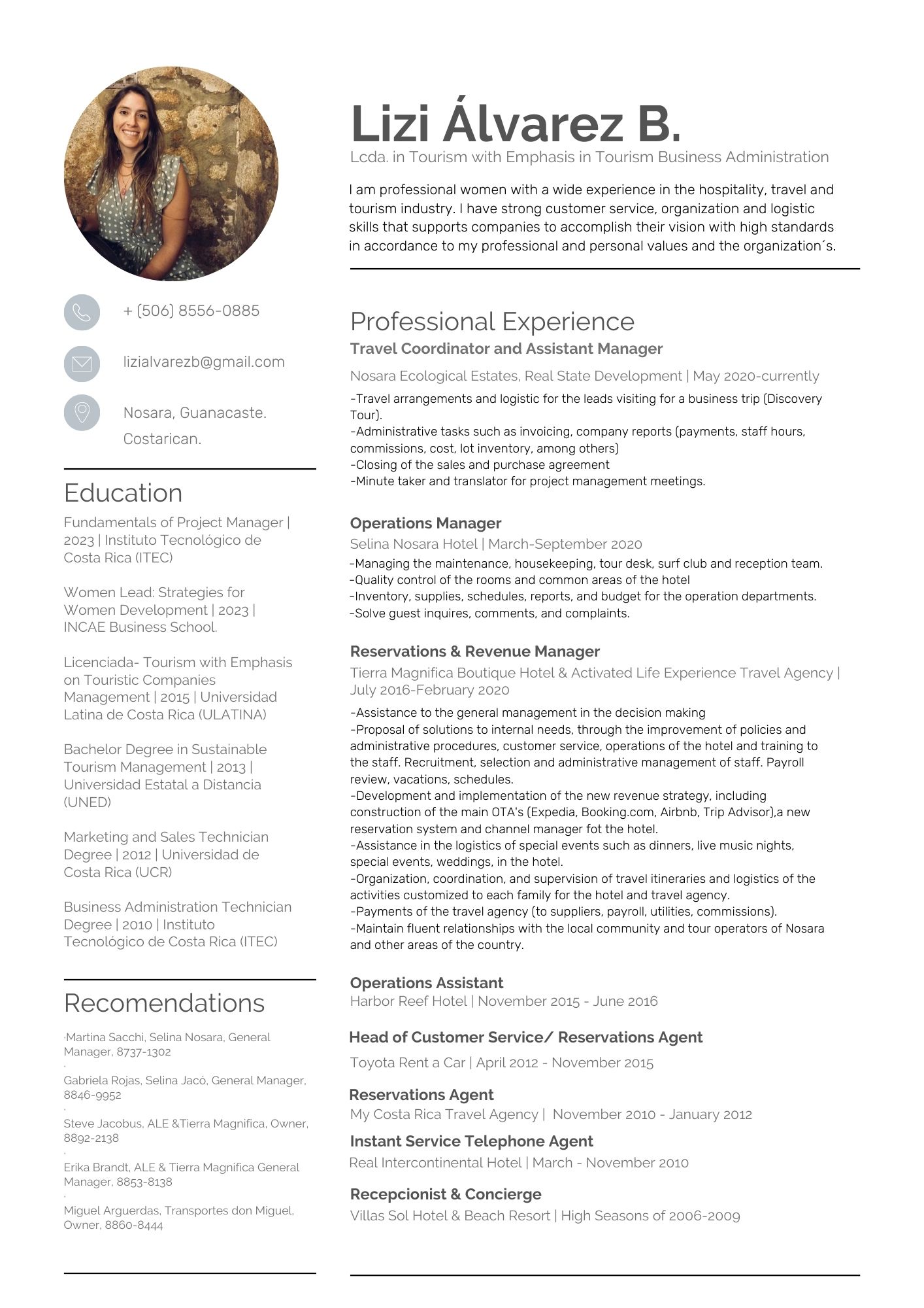 With over 15 years in the travel industry, my professional path has woven through various sectors, including international and national tourism businesses such as travel agencies, hotels, boutique establishments, car rentals, and real estate ventures. This diverse background, coupled with my studies in sales & marketing, tourism, administration, and project management, has shaped me into a seasoned professional equipped to offer you unparalleled assistance during your visit to my cherished homeland.